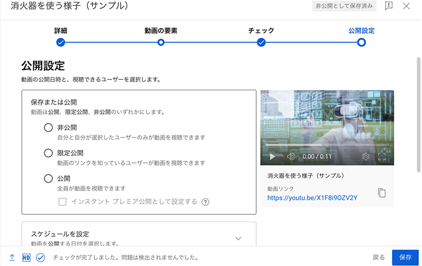 - (6)公開設(shè)定を選択して「保存」をクリック。これで動(dòng)畫投稿が完了です。