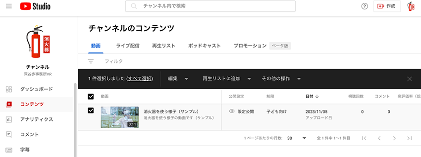 用意した動(dòng)畫をチャンネルにアップロードして公開します。