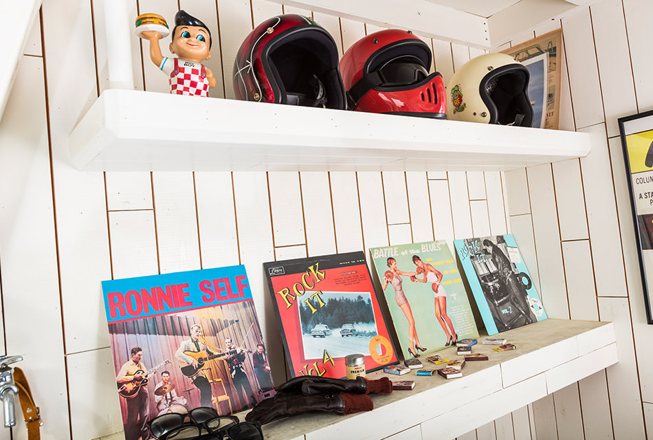 ヘルメットなどのアイテムもディスプレイ収納でおしゃれに