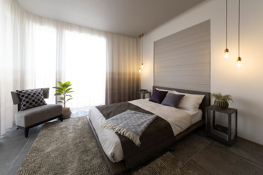「主寢室にはIoT機能を備えていますので、音聲で照明?カーテン?空調をコントロールしていただけます。ベッドに橫たわったまま照明をつけたり、カーテンを開けられるので快適です」