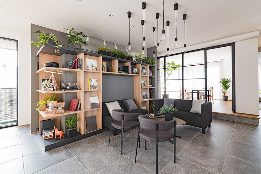 〈リビング〉LDKはラウンジ&モダンカフェの雰囲気