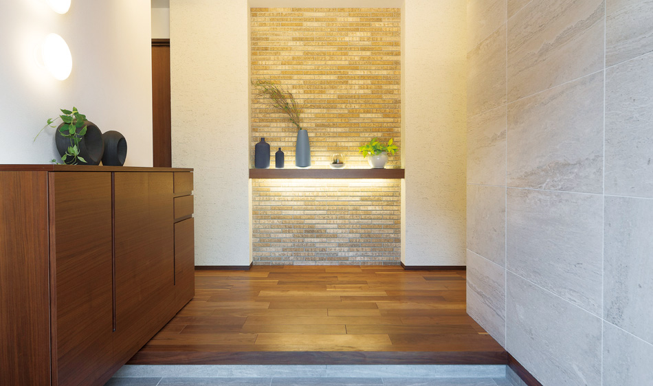 ここに凹凸感のあるタイルを張ることで、住まい全體の雰囲気が高まります。