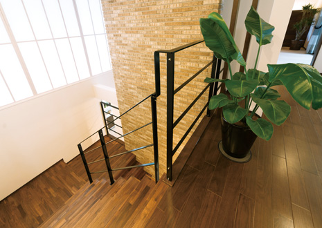 吹き抜けや階段ホールなど、縦方向に連続する壁に用いる手法。